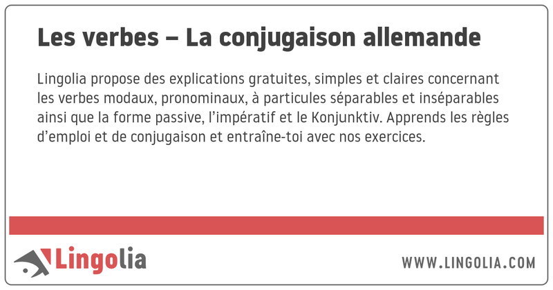 Lingolia propose des explications gratuites, simples et claires concernant les verbes modaux, pronominaux, à particules séparables et inséparables ainsi que la forme passive, l’impératif et le Konjunktiv. Apprends les règles d’emploi et de conjugaison et entraîne-toi avec nos exercices.