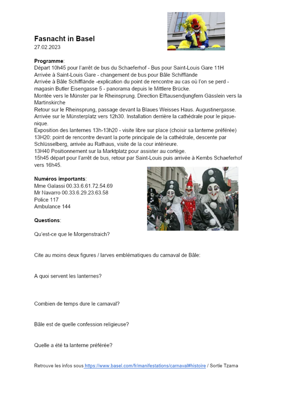 Du 27 février au 1er mars 2023Le Carnaval de Bâle est inscrit dans l’ADN de la ville. Il est considéré comme le moteur de sa créativité culturelle et, pendant trois jours, plonge la cité rhénane dans la plus grande effervescence. Son caractère unique et sa qualité remarquable lui ont valu d’être inscrit au patrimoine mondial culturel immatériel de l’UNESCO.