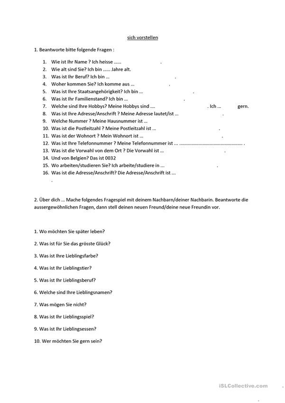 schriftliche und mündliche Übung: Fragen über sich lesen und beantworten, Interview mit einem Freund/einer Freundin über sich. Fragen beantworten, Text über ein Mädchen und Wortschatz - DaF Arbeitsblätter