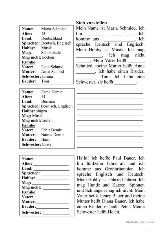 Ein Arbeitsblatt zum Thema "sich vorstellen". Gut für die Anfänger geeignet. Geübt wird das Herauslesen der Informationen aus dem Text bzw. aus einer Tabelle. Anschließend können die Lerner sich selbst vorstellen. - DaF Arbeitsblätter