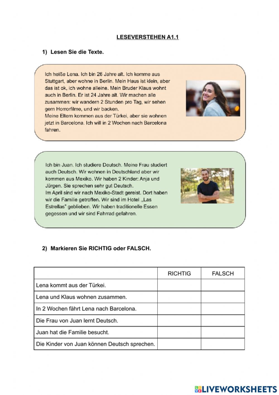 Leseverstehen A1.1 worksheet